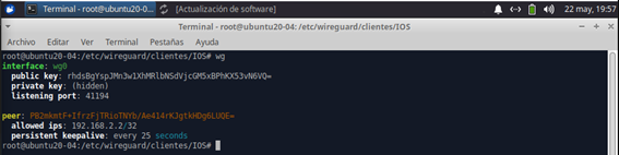 8 - Ahora vemos con el comando wg que la configuración funciona corretamente:
