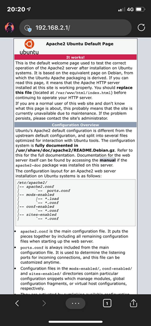 Como se puede ver, podemos acceder al servicio apache, aunque no se vea en la imagen que el servicio VPN en el móvil esta activado, si lo está, como se puede ver estoy conectado por 4G, pero por la propia visualización que hacen los dispositivos IOS no se ve en la propia pantalla si estas conectado a la VPN.