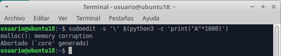 Según la documentación, que podemos encontrar en el siguiente enlace , con el comando que ejecutamos anteriormente si nos sale el mensaje de "memory corruption", eso quiere decir que la máquina tiene sudo vulnerable.