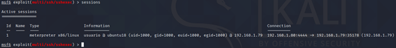 Con el comando sessions, podemos ver la sesión que creamos anteriormente: