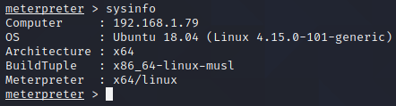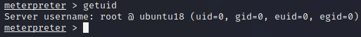 Y a continuación vamos a usar una serie de comandos hasta llegar a acceder mediante el meterpreter como root en la máquina objetivo(Ubuntu 18.04).