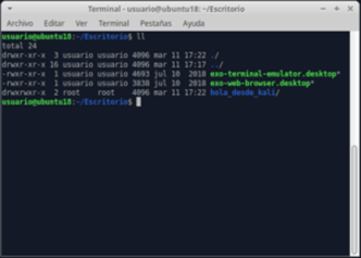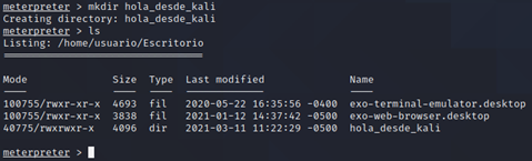 Como se puede ver con este último comando estamos como root, así que vamos a probar a crear una carpeta dentro del escritorio del usuario al que nos conectamos por ssh: