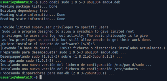 Y volvemos a comprobar la versión, para ver que efectivamente se nos ha parcheado el SUDO: