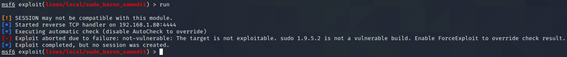 Una vez hecho esto, hemos acabado con la primera parte de la preparación del exploit de SUDO, el siguiente paso que vamos a realizar, es buscar dicho exploit, para ello usamos de nuevo el comando search :
